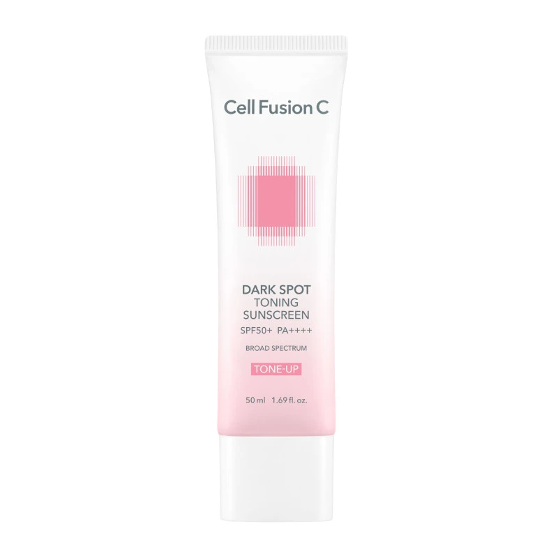 Cell Fusion C tonizuojantis kremas nuo saulės „Dark Spot Toning Sunscreen” sukurtas odai, linkusiai į tamsias dėmes, strazdanas ir melazmos požymius.