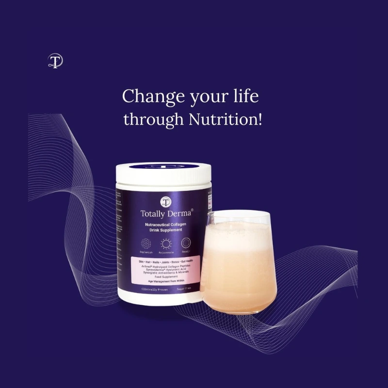Totally Derma® maisto papildas veikia iš vidaus: padeda palaikyti kolageno, elastino ir hialurono rūgšties atsargas organizme, kurios įtakoja fizinius senėjimo procesus ir pagrindinius fiziologinius procesus.